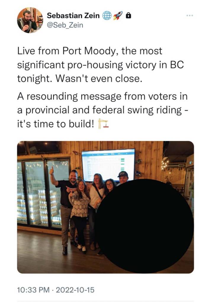It has come to the attention of the Watch that Sebastian Zein, who was present at the Lahti Campaign Celebration on Election night, has according to his Linkedin account, recently taken on the position as Development Manager with the AP Group of Companies, the proponents for the Flavelle Oceanfront Development at the old Flavelle Mill Site, potentially one of Port Moody’s largest developments. According to his Lindedin account, Mr. Zein took the position in November 2022, just after the Port Moody Civic Election.