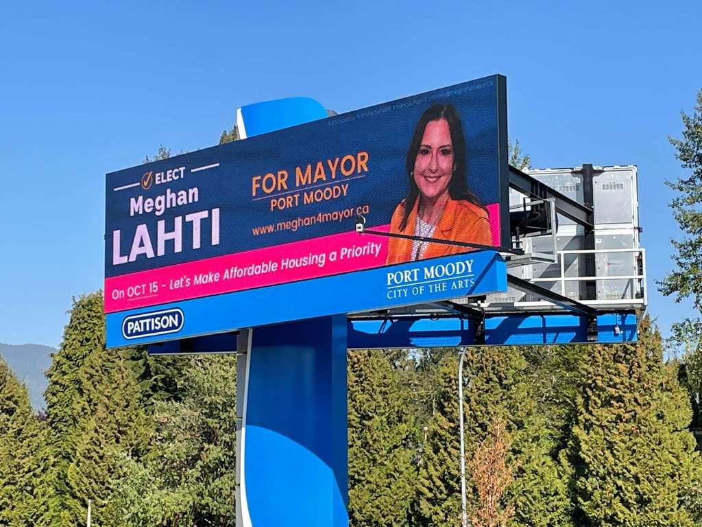 During the recent Port Moody civic election, massive elect “Meghan Lahti for Mayor” digital advertisements appeared on the large electronic billboard at the intersection of Barnet Highway and Ioco Road (see above). The ads ran for a couple of days and then mysteriously disappeared. The advertisements inspired a great deal of controversy amongst staff at the City of Port Moody as can be seen in the results of a recently released FOI request submitted to the City of Port Moody regarding the matter and it has since been confirmed as a result of the FOI request (see below) that the digital advertisements were ultimately determined to be non-compliant with the City’s Election Bylaw and were ordered to be taken down by the city.